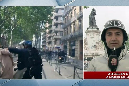 A News reporter Alpaslan Düven broadcast from Paris like this.